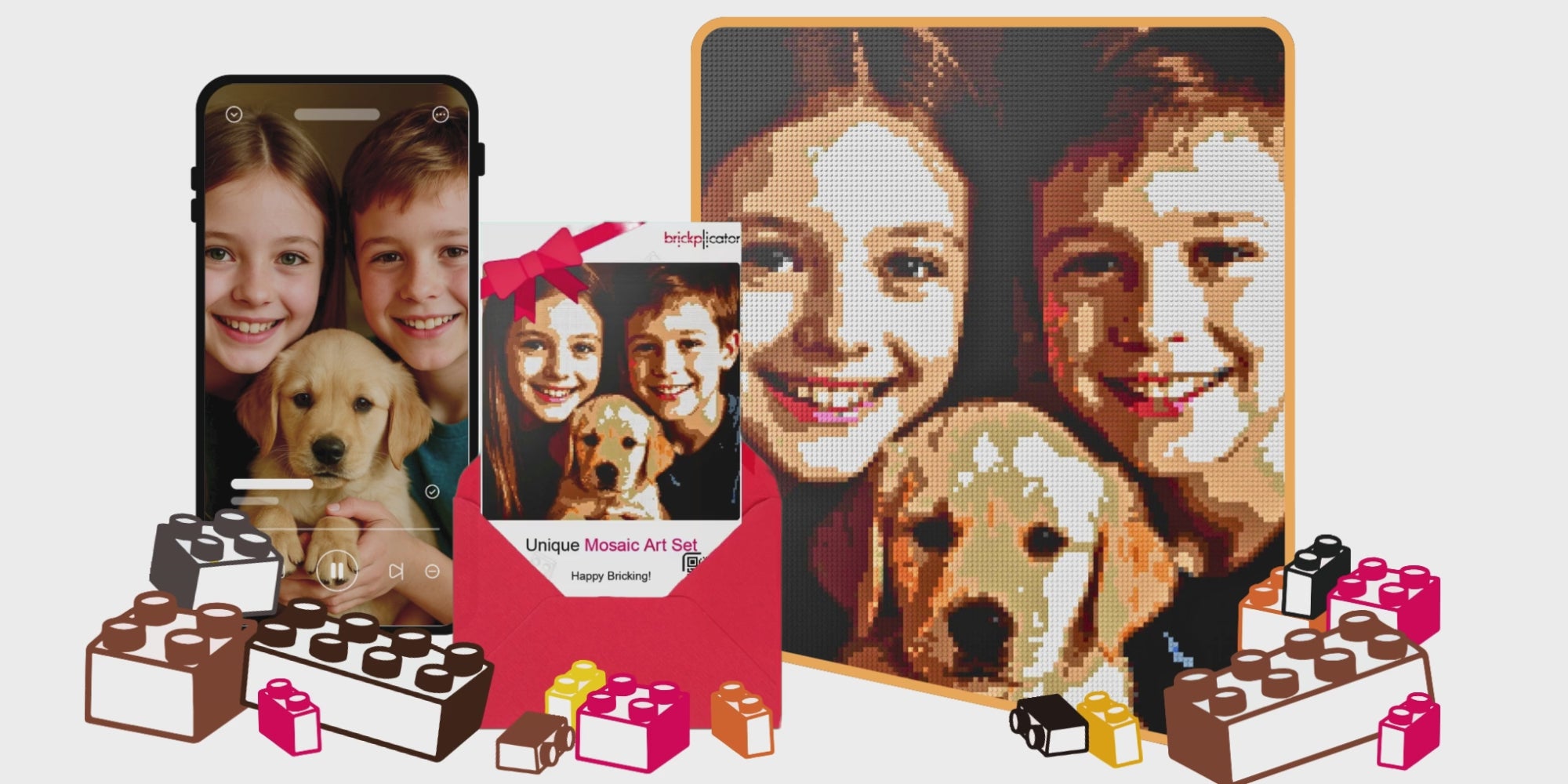 Turn a beloved photo into a brick mosaic – designed for lasting joy and perfect for any occasion.